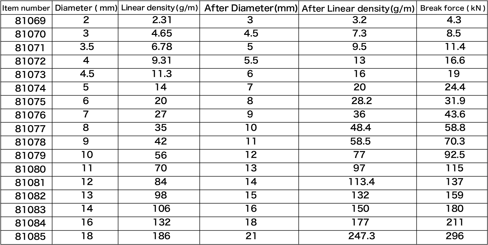 Notes:1.The material is DSM Dyneema fibre