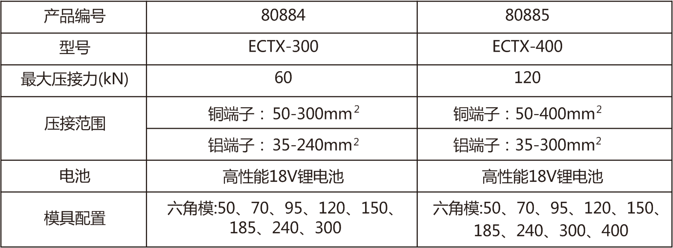 说明:内置式安全阀,当压力达到最大时可以自动泄压, 内置微电脑芯片控制器,一次充电完成更多压接。